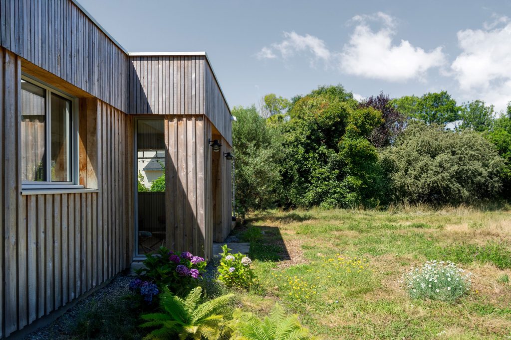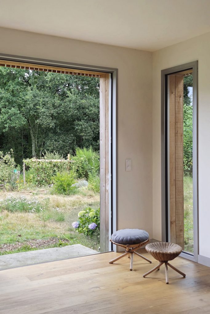 En bordure du hameau de Lestreviau, caractérisé par un mélange hétéroclite de pavillons et d’anciens bâtiments agricoles, se trouve une maison récente construite dans les années 2000. Conçue sans réelle prise en compte de son contexte, cette habitation semble posée dans le paysage sans réflexion particulière. Son intérieur, peu fonctionnel, présente des espaces de vie étroits et mal orientés. Le projet consiste donc à réaliser une extension et à repenser l’organisation des espaces intérieurs. Cette extension s’ouvre sur les éléments naturels environnants : l’étang situé au nord et la forêt à l’est de la parcelle, afin de créer un lien fort entre la maison et son environnement. Les matériaux utilisés sont principalement biosourcés, dans une démarche de réemploi et de réduction maximale de l’empreinte carbone pour les générations futures.